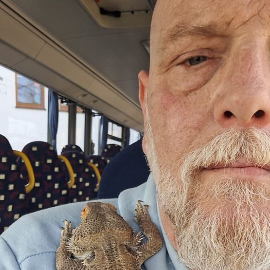 M. hat Getränke im Bus, Wasser gibt es sogar umsonst und Süßigkeiten beim Aussteigen. Manchmal fährt Klaus, sein Leguan - am Bild, mit. Die Schulkinder sind begeistert.🤩 Natürlich spielt er unsren Kindern auch immer wieder mal ihre Lieblingslieder vor. 🥳 So kann es schon sein, dass wir das erste Ständchen von den Dorfkindern oder Wackelkontakt nach der Schule bekommen. Unsre Kinder fahren auch lieber mit ihm im Bus mit, obwohl sie von der ein oder anderen Mama/Papa abgeholt werden. 😁 Dann heißt s nur: Mama die Schultasche kannst du mitnehmen, ich fahre mit M. mit. 😂 M. hat sich sogar schon gegen die Behörden gestellt, wenn der Ein- oder Ausstieg zu unübersichtlich war und für ihn Umwege und Zeitaufwand auf sich genommen.